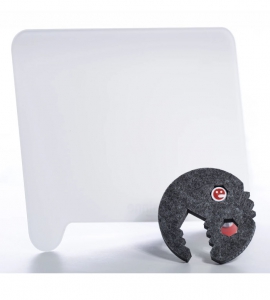 TABLA IDEJ imsinne madame navduši s svojo velikostjo, ki je kot torbica in čudovitim občutkom klobučevine. Omogoča vizualizacijo misli. Je izjemno lahka in služi kot mala moderna miza. Udobno se počuti tako v naročju, na mizi ali na tleh. Zakovice iz visokokakovostne plastike ne ščitijo le table, ampak tudi tla pred praskami, zato se je madame izkazala kot zelo primerna tudi za zelo majhne otroke.